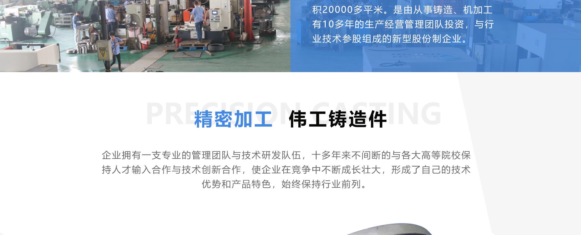 安徽偉工機(jī)械科技有限公司,坐落于安徽蕪湖新蕪經(jīng)濟(jì)開發(fā)區(qū),是一家専業(yè)從事鑄造產(chǎn)品設(shè)計(jì)、研發(fā)、生產(chǎn)、銷售于一體的企業(yè),公司為客戶的產(chǎn)品提供多樣的技術(shù)支持與設(shè)計(jì),公司主要鑄造技術(shù)有潮模砂鑄造、硅溶膠精鑄工藝。主要產(chǎn)品有:不銹鋼閥門配件、泵閥配件、汽車配件、工業(yè)管道配件、工程機(jī)械配件、汽車配件等。材質(zhì)為:低合金鋼、304、316、316L、鉻鉬鋼、哈氏合金、碳鋼、雙相鋼等。公司已先后通過ISO9001和TS16949等多種體系審核,以完備的管理手段和齊全的檢測設(shè)備滿足客戶需求,進(jìn)的設(shè)備,専業(yè)的技術(shù),嚴(yán)謹(jǐn)?shù)墓芾恚€(wěn)定的質(zhì)量。服務(wù)客戶,鑄造未來,偉工誠摯的歡迎新老客戶共同商洽合作